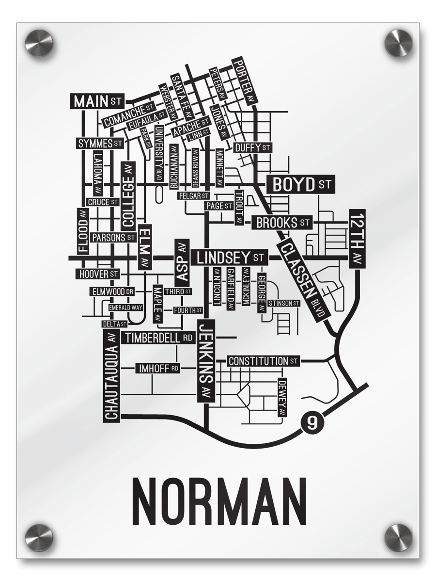 Norman, Oklahoma Street Map Canvas | School Street Posters